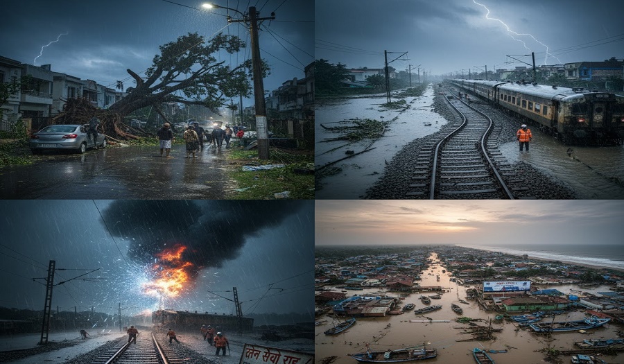 भारत के पूर्वी तट पर चक्रवाती तूफान ‘मोंथा’ ने भारी तबाही मचाई है। आंध्र प्रदेश और ओडिशा के कई तटीय जिलों में 100 से 110 किलोमीटर प्रति घंटे की रफ्तार से हवाएं चलीं और मूसलाधार बारिश हुई, जिससे जनजीवन पूरी तरह अस्त-व्यस्त हो गया।