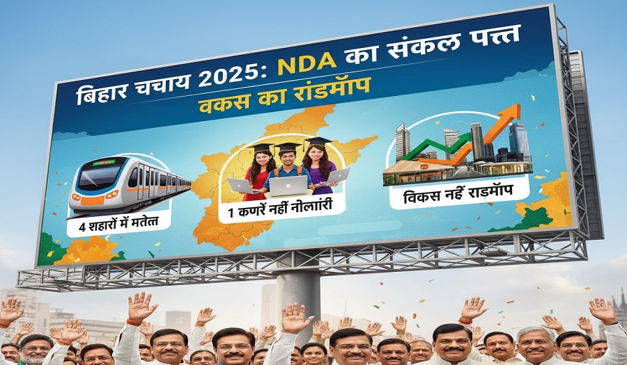 बिहार विधानसभा चुनाव 2025 के लिए राष्ट्रीय जनतांत्रिक गठबंधन (NDA) ने अपना चुनावी घोषणा पत्र ‘संकल्प पत्र’ जारी कर दिया है।