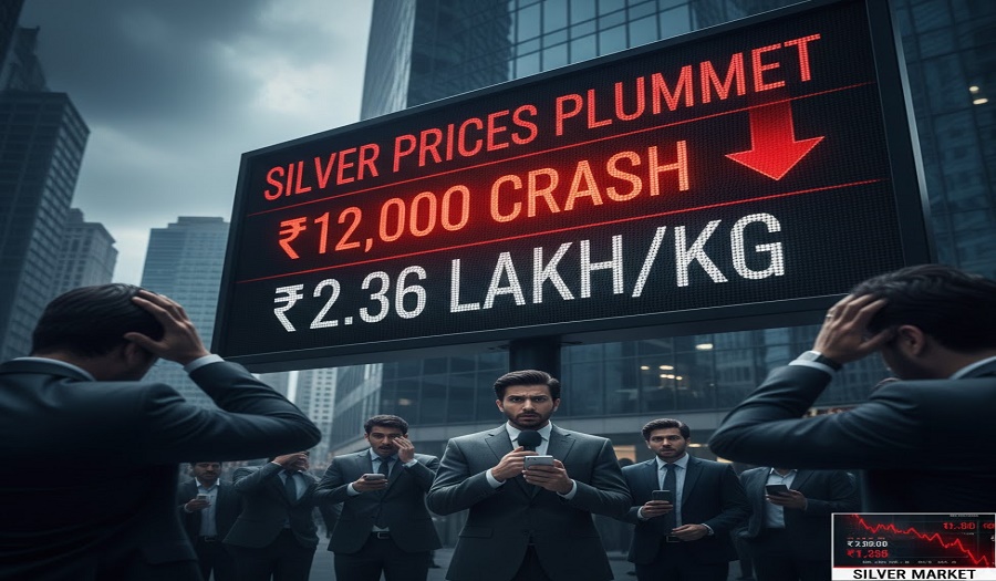 चांदी की कीमत में भी तेज गिरावट देखने को मिली है। एक किलो चांदी का भाव 12,225 रुपये कम होकर 2,35,775 रुपये प्रति किलो पर आ गया है। इससे पहले चांदी 2,48,000 रुपये प्रति किलो के स्तर पर थी, जो इसका ऑल टाइम हाई भी था।