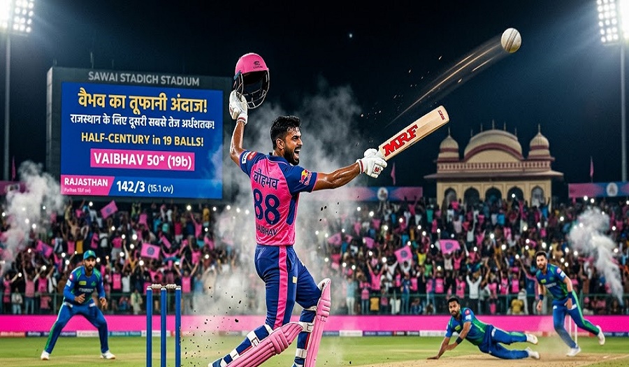 15 साल के वैभव सूर्यवंशी ने राजस्थान रॉयल्स के लिए दूसरी सबसे तेज फिफ्टी का रिकॉर्ड बनाया। वैभव की इस पारी की बदौलत राजस्थान ने मंगलवार को गुवाहाटी में चेन्नई सुपर किंग्स को 8 विकेट से हराया।
