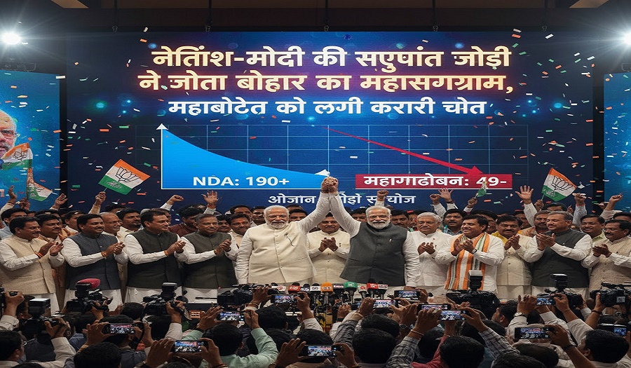 बिहार विधानसभा चुनाव 2025 में एनडीए एक बार फिर ऐतिहासिक जीत की ओर बढ़ रहा है। इसी बीच प्रधानमंत्री नरेंद्र मोदी आज शाम 6 बजे दिल्ली स्थित बीजेपी मुख्यालय में कार्यकर्ताओं को संबोधित करेंगे। शुरुआती रुझानों में भाजपा–जदयू गठबंधन की बड़ी बढ़त के बाद दोनों दलों के कार्यालयों में जश्न का माहौल है। कार्यकर्ता ढोल-नगाड़ों पर नाचते दिख रहे हैं, मिठाइयां बांटी जा रही हैं और पटाखे फोड़कर जीत का उत्सव मनाया जा रहा है। एनडीए की इस बढ़त में मुख्यमंत्री नीतीश कुमार और प्रधानमंत्री मोदी की लोकप्रियता अहम कारक साबित हुई है।