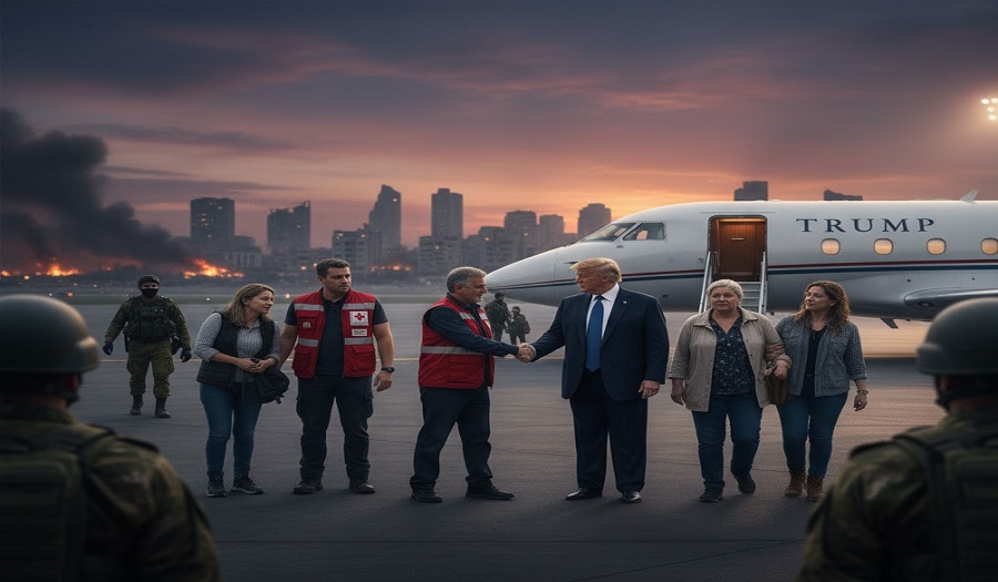 शांति की दिशा में कदम: हमास से 7 बंधक रिहा, सीजफायर के बीच ट्रंप पहुंचे इजरायल